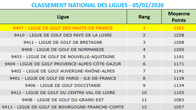 Bravo aux Golfs de Bondues, Wimereux et Amiens sur le podium provisoire de la région !